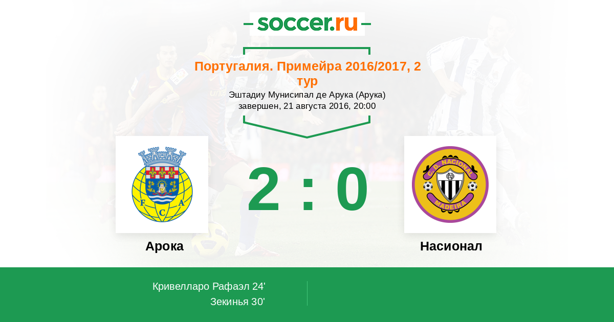 Протокол матча Арока против Насионал