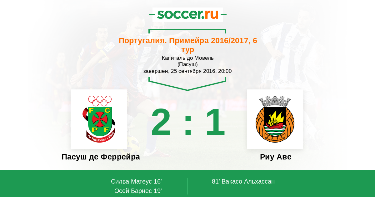 Протокол матча Пасуш де Феррейра против Риу Аве