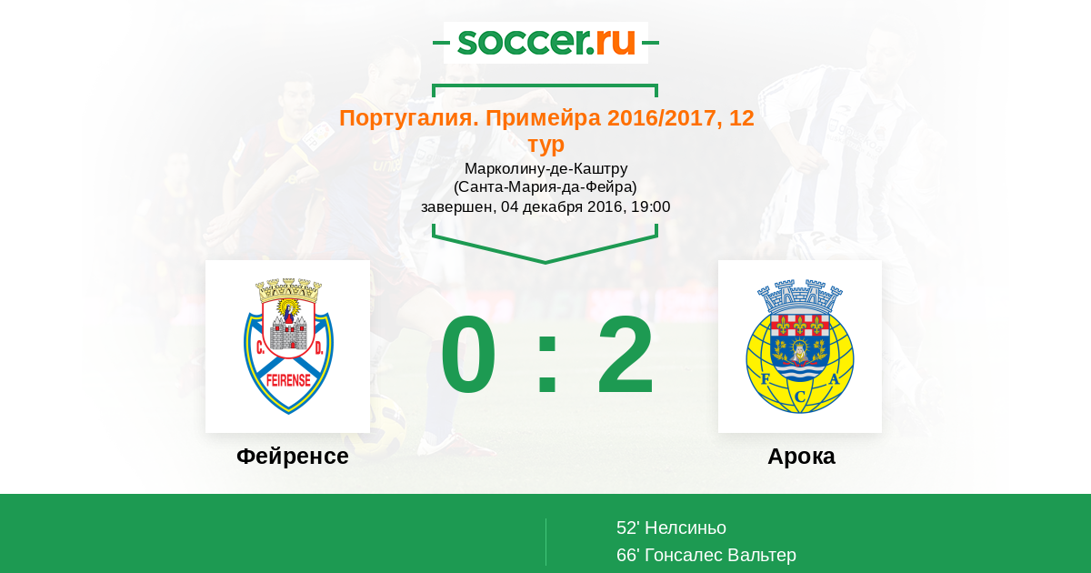 52' (0:1) Нелсиньо (55) (Матеуш (12))