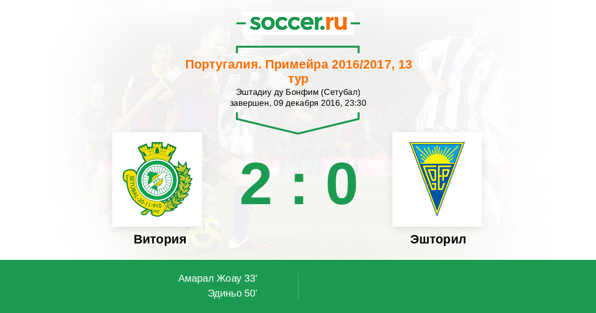50' (2:0) Эдиньо (36) (Сантуш Нуну (10))