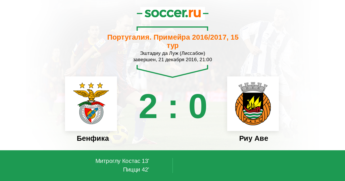 Протокол матча Бенфика против Риу Аве