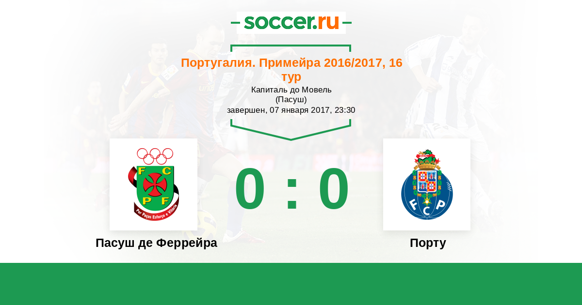 Протокол матча Пасуш де Феррейра против Порту