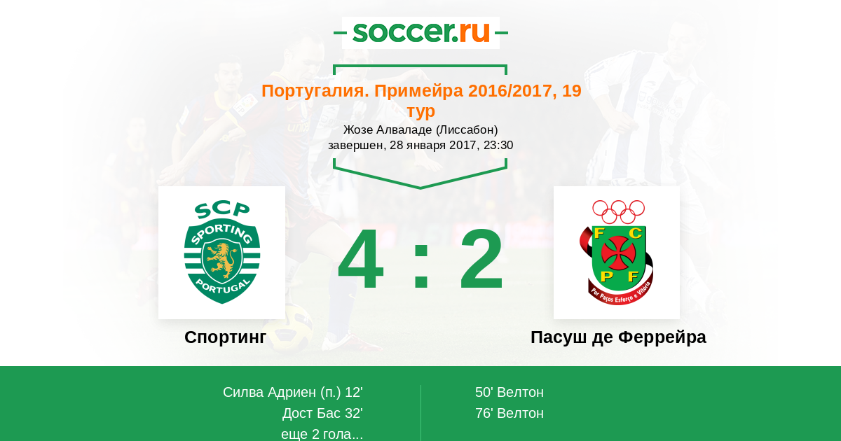 Протокол матча Спортинг против Пасуш де Феррейра