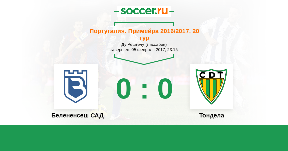 Протокол матча Белененсеш САД против Тондела
