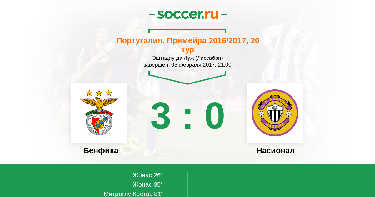 Протокол матча Бенфика против Насионал