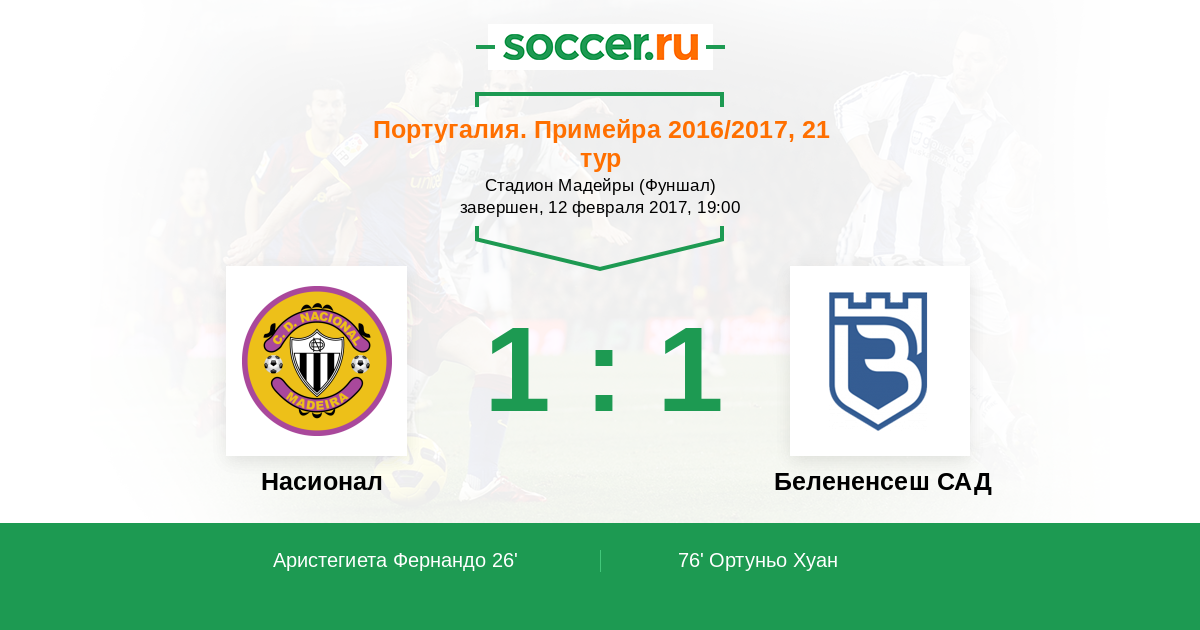 Протокол матча Насионал против Белененсеш САД