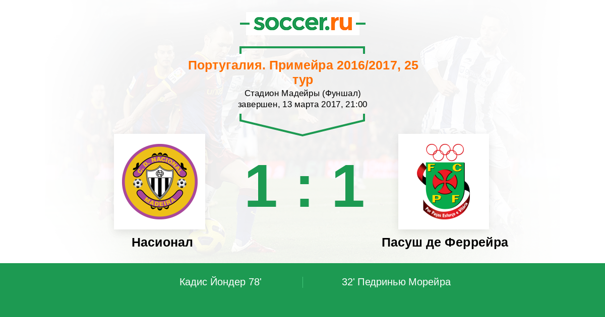 Протокол матча Насионал против Пасуш де Феррейра