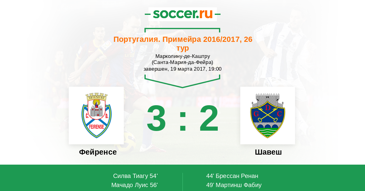 Протокол матча Фейренсе против Шавеш
