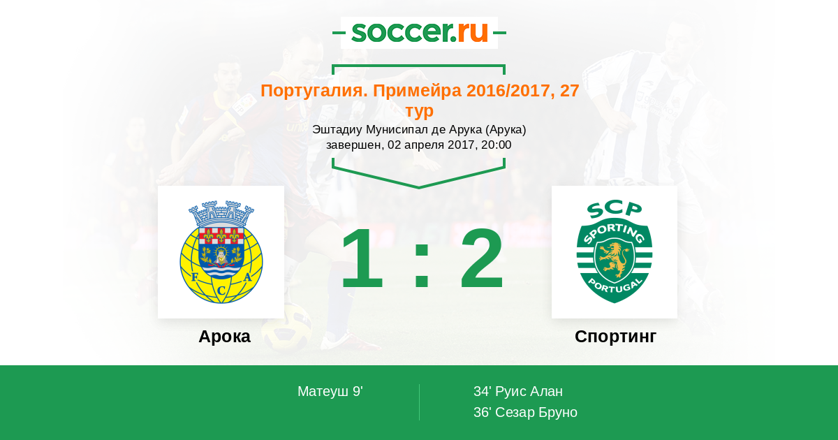 Протокол матча Арока против Спортинг
