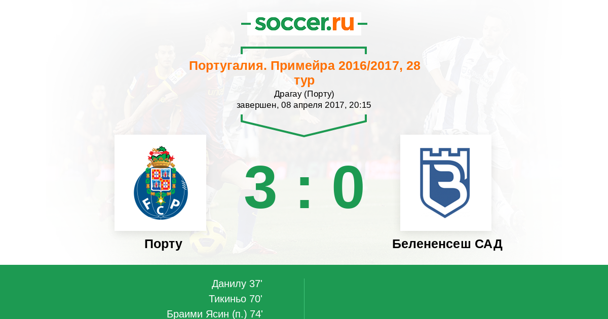 37' (1:0) Данилу (22) (Силва Андре (10))