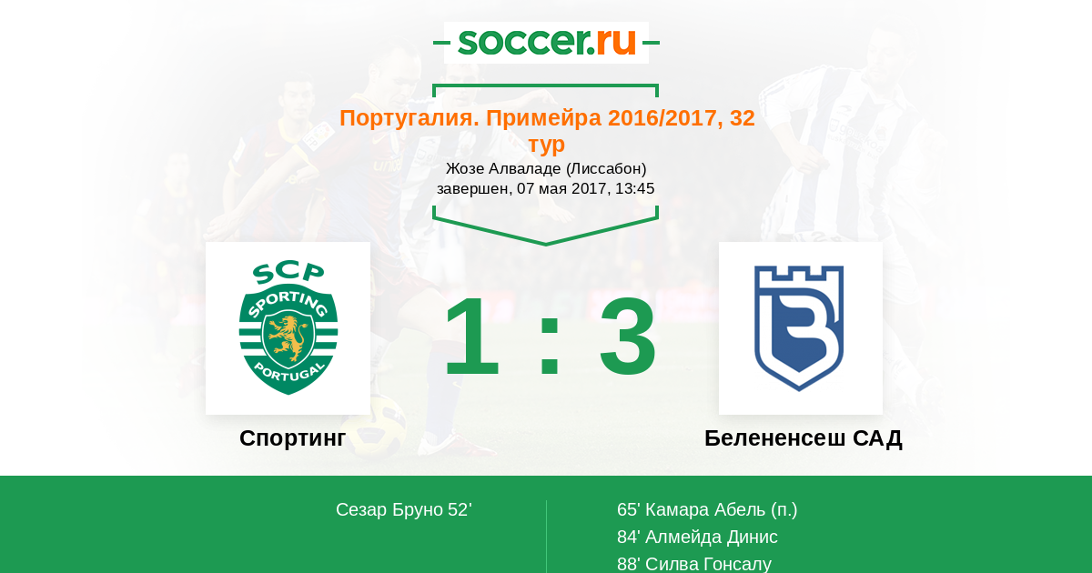 Протокол матча Спортинг против Белененсеш САД