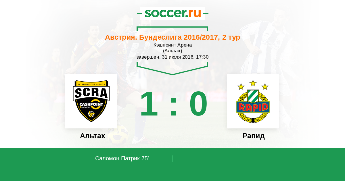 Протокол матча Альтах против Рапид