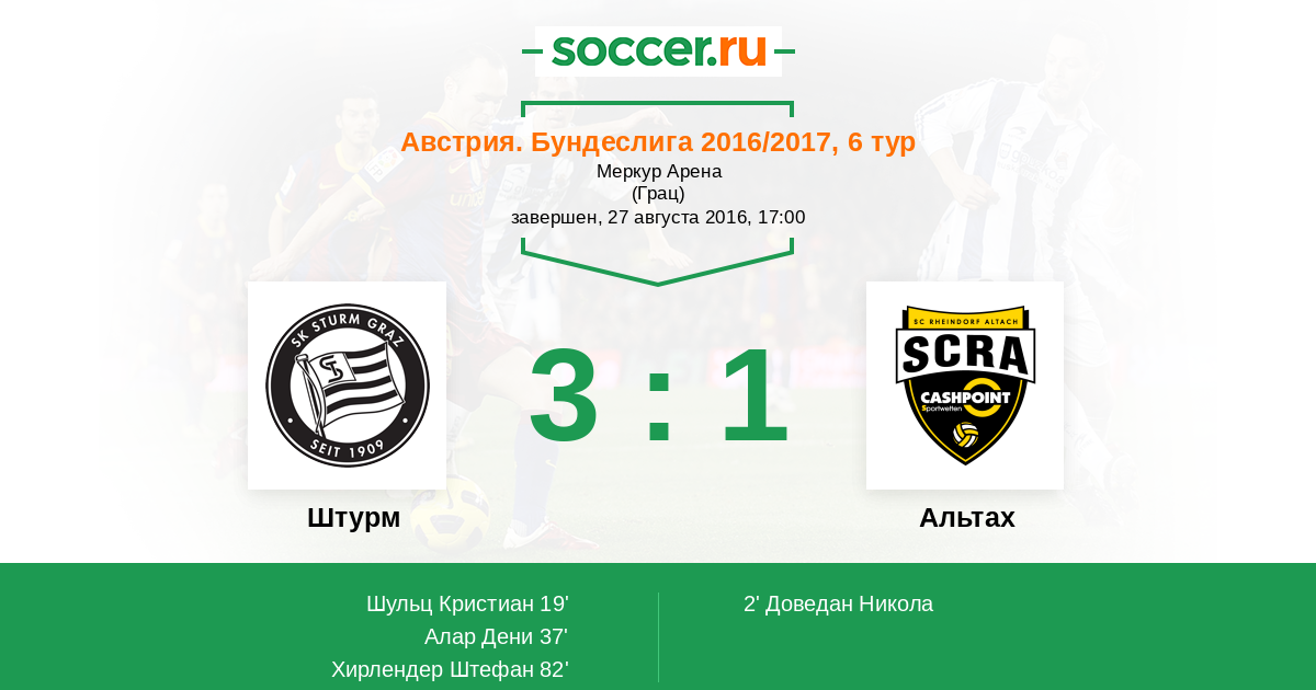 Протокол матча Штурм против Альтах