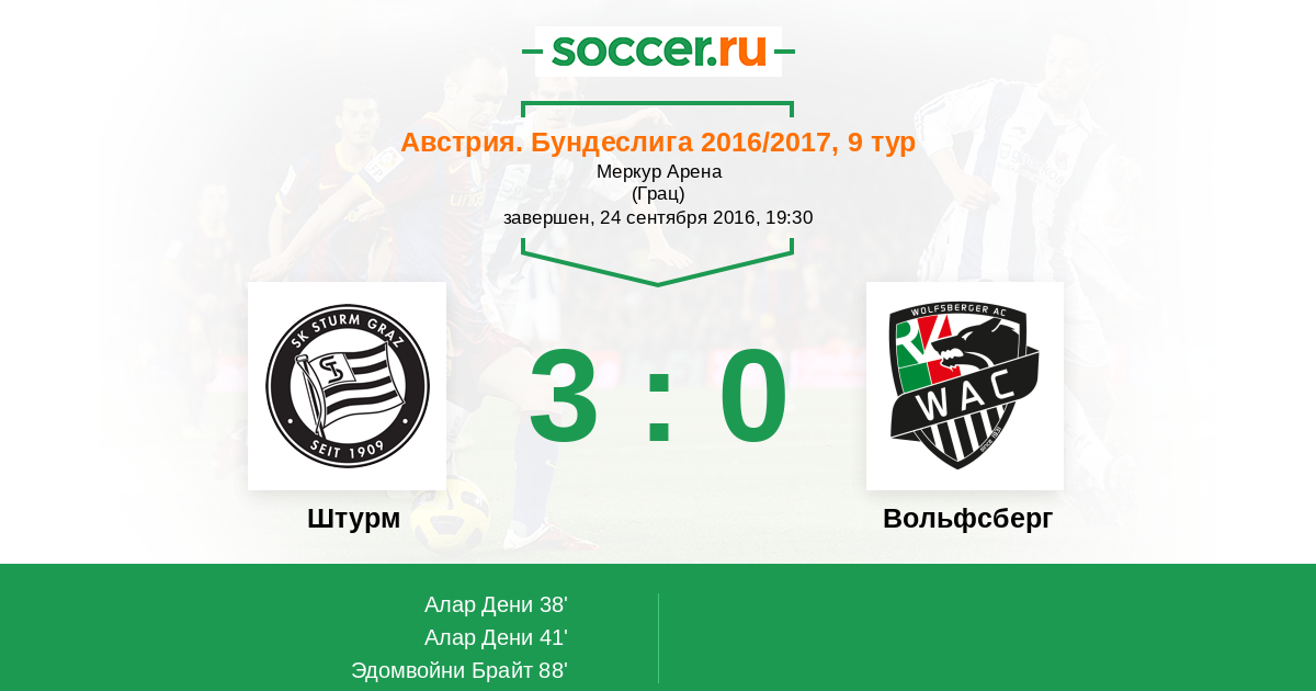 38' (1:0) Алар Дени (9) (Шмербек Марк-Андре (24))