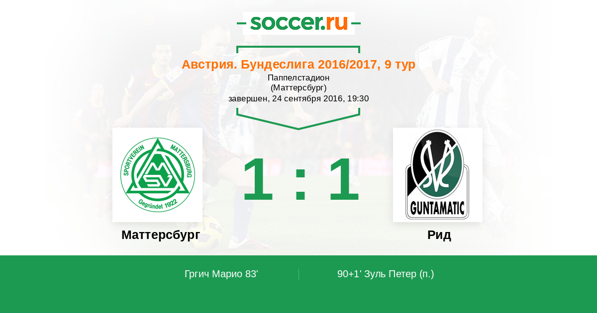 90+1’ 1:1(П) Зуль Петер