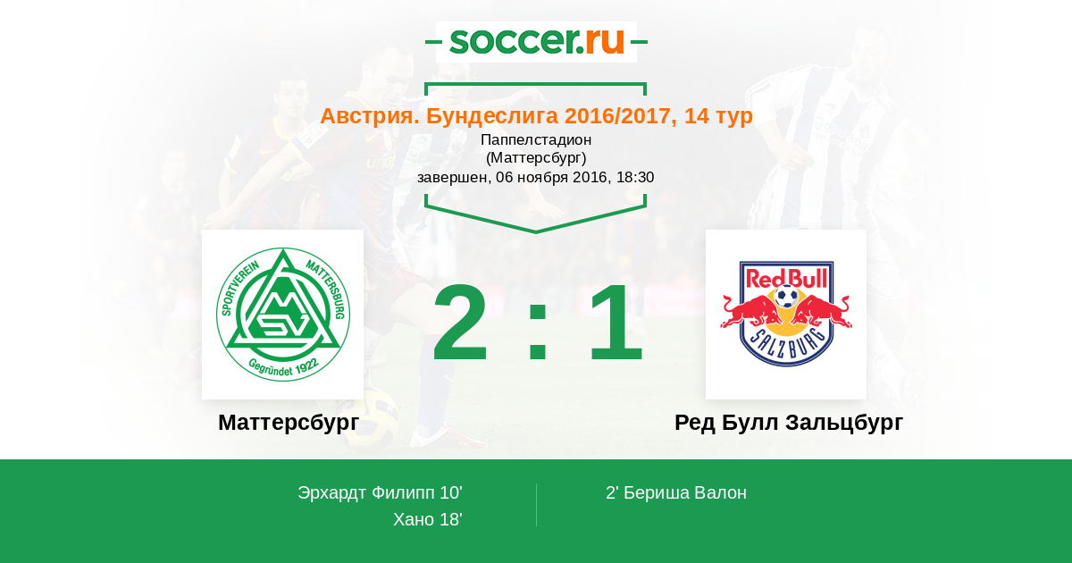 Протокол матча Маттерсбург против Ред Булл Зальцбург