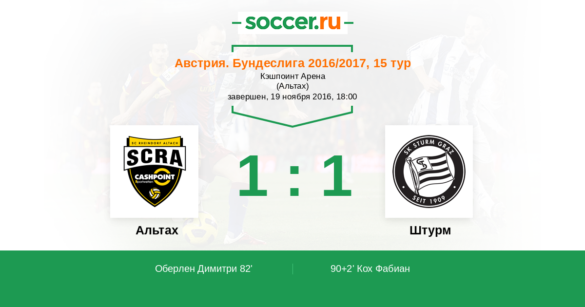 Протокол матча Альтах против Штурм