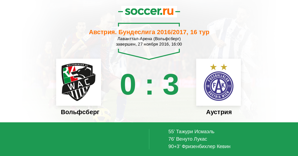 Протокол матча Вольфсберг против Аустрия