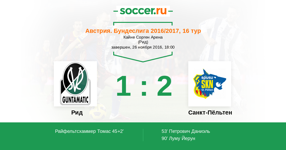 45+2' (1:0) Райфельтсхаммер Томас (28) (Бергманн Томас (14))