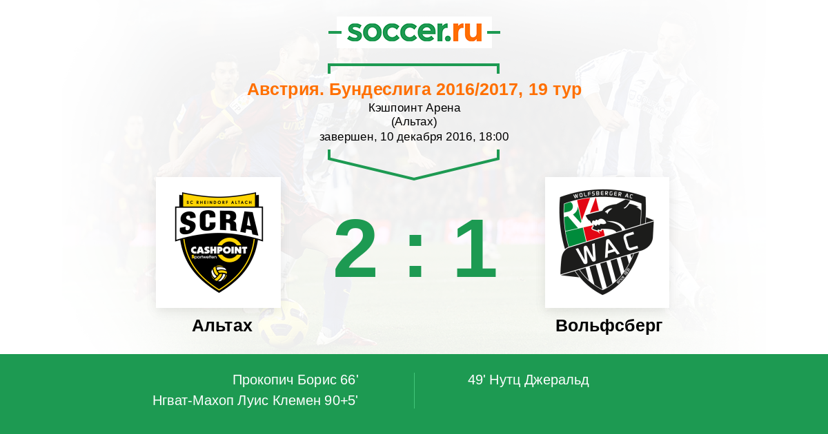 Протокол матча Альтах против Вольфсберг
