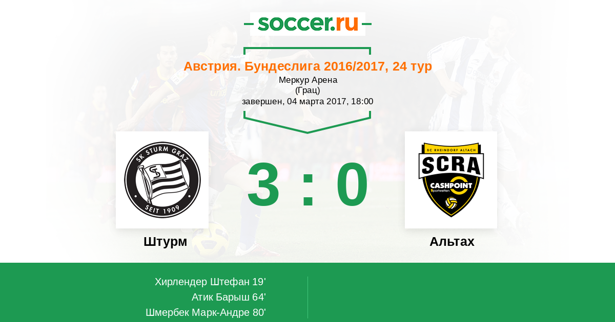 Протокол матча Штурм против Альтах