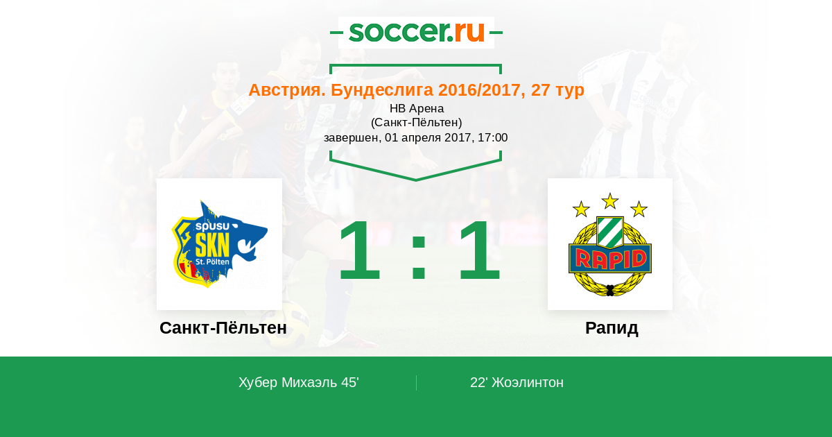 Протокол матча Санкт-Пёльтен против Рапид