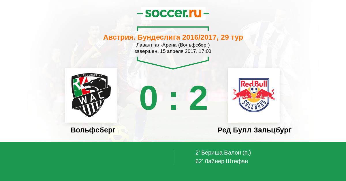 Протокол матча Вольфсберг против Ред Булл Зальцбург