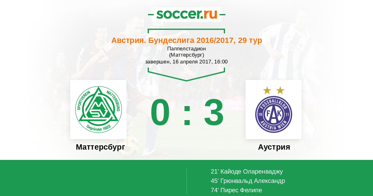 Протокол матча Маттерсбург против Аустрия