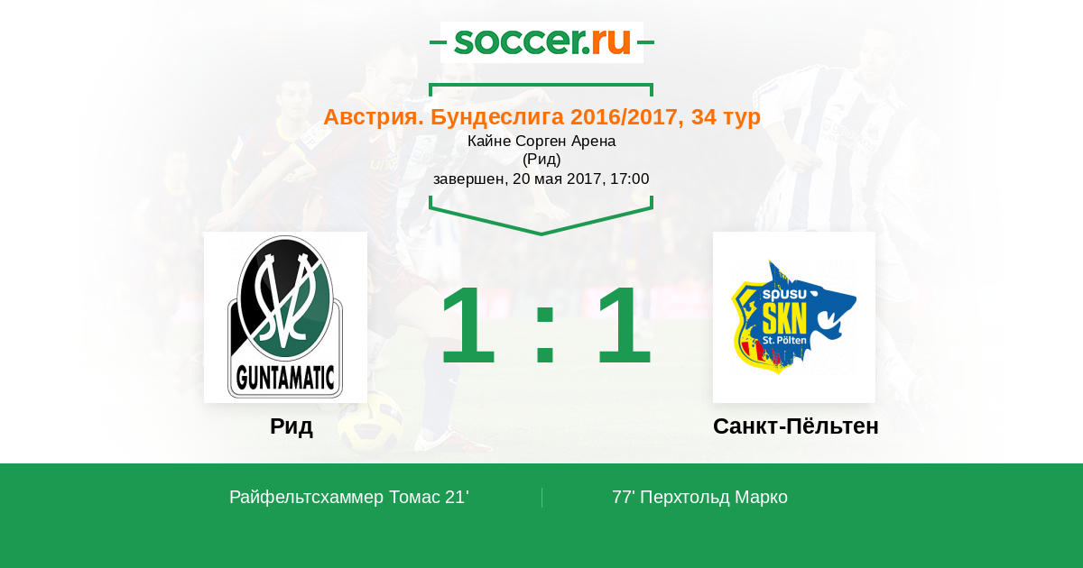 Протокол матча Рид против Санкт-Пёльтен
