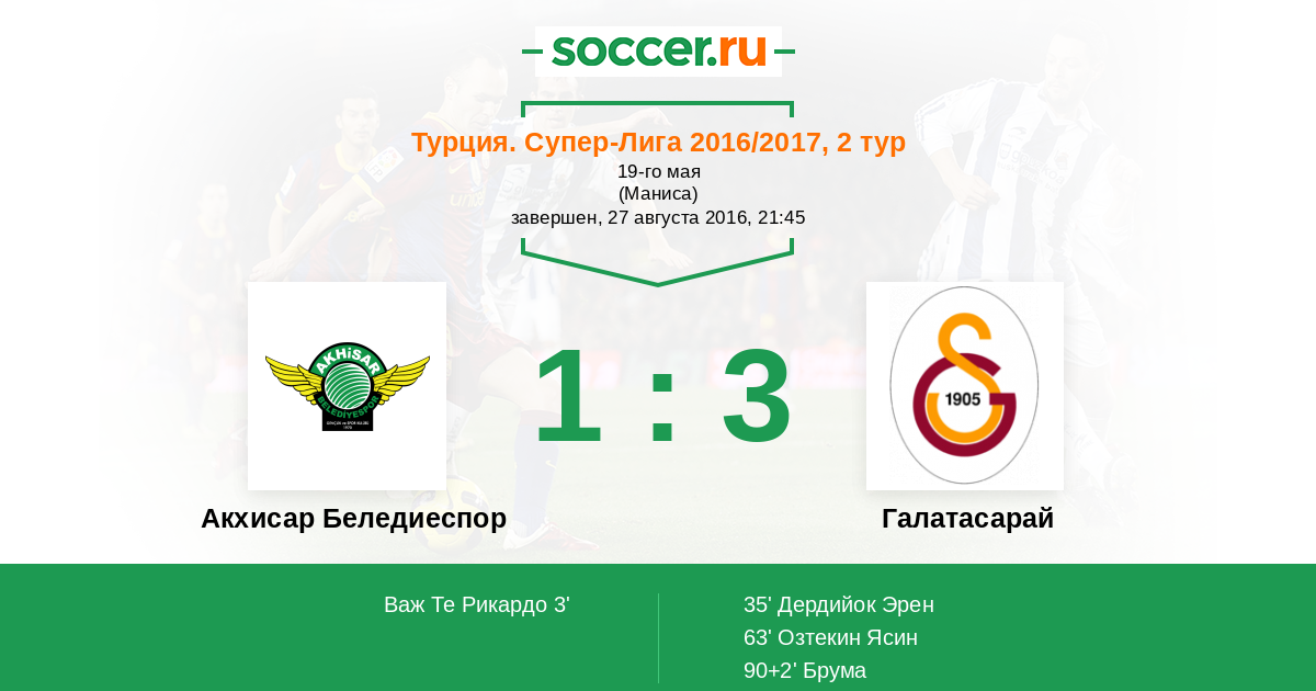 Протокол матча Акхисар Беледиеспор против Галатасарай