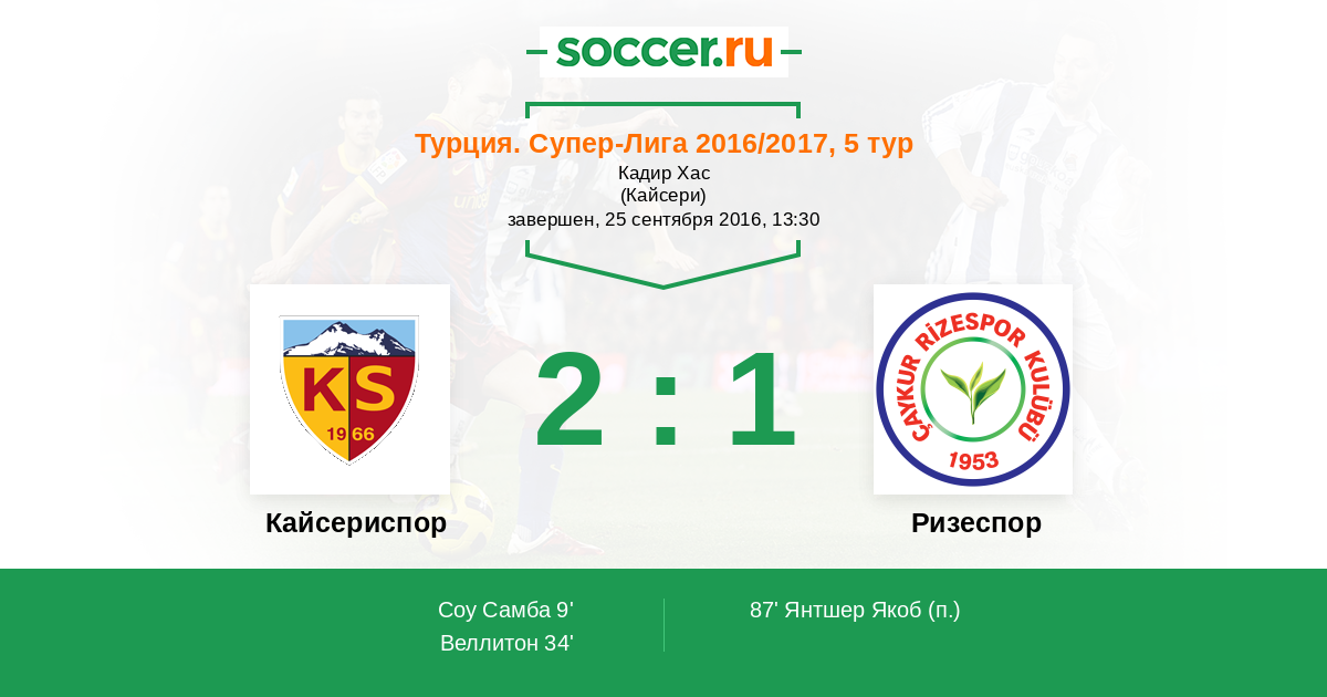 Протокол матча Кайсериспор против Ризеспор
