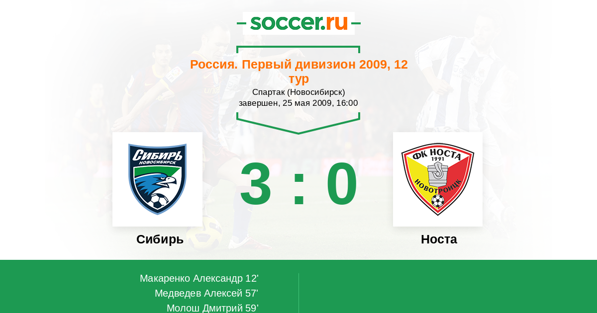 Протокол матча Сибирь против Носта