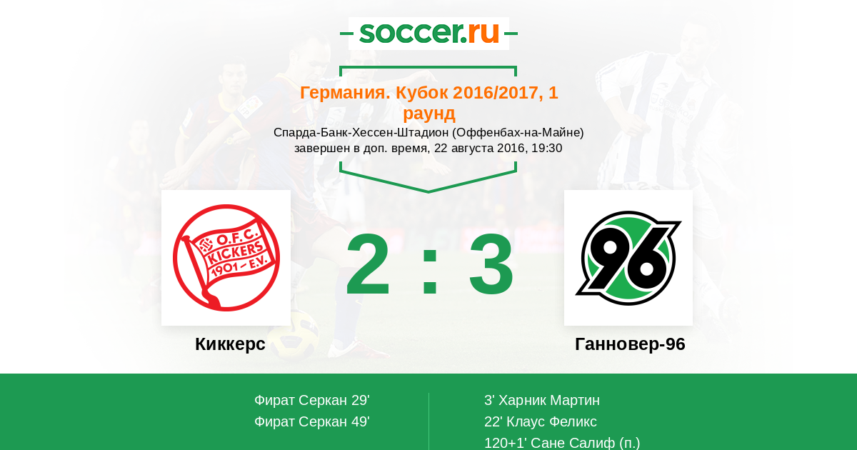 Протокол матча Киккерс против Ганновер-96