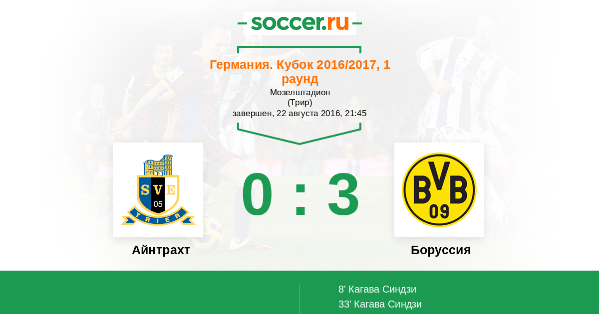 Протокол матча Айнтрахт против Боруссия