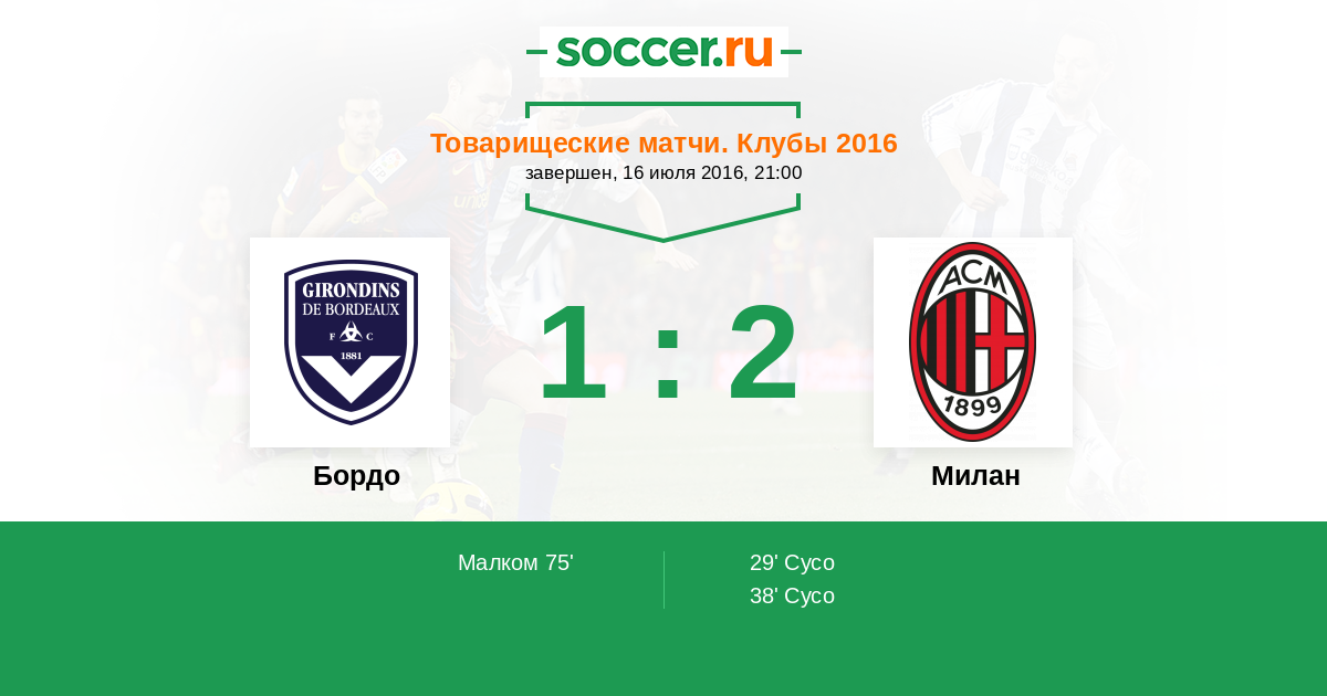 38' (0:2) Сусо (8) (Бонавентура Джакомо (5))