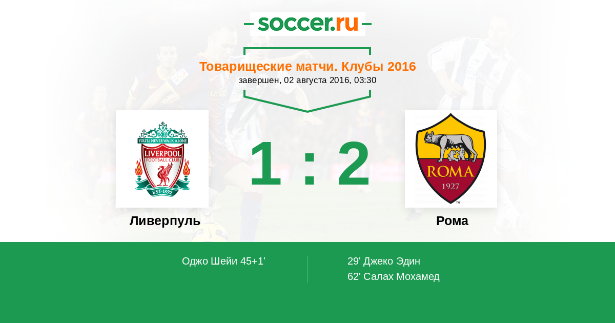 Протокол матча Ливерпуль против Рома
