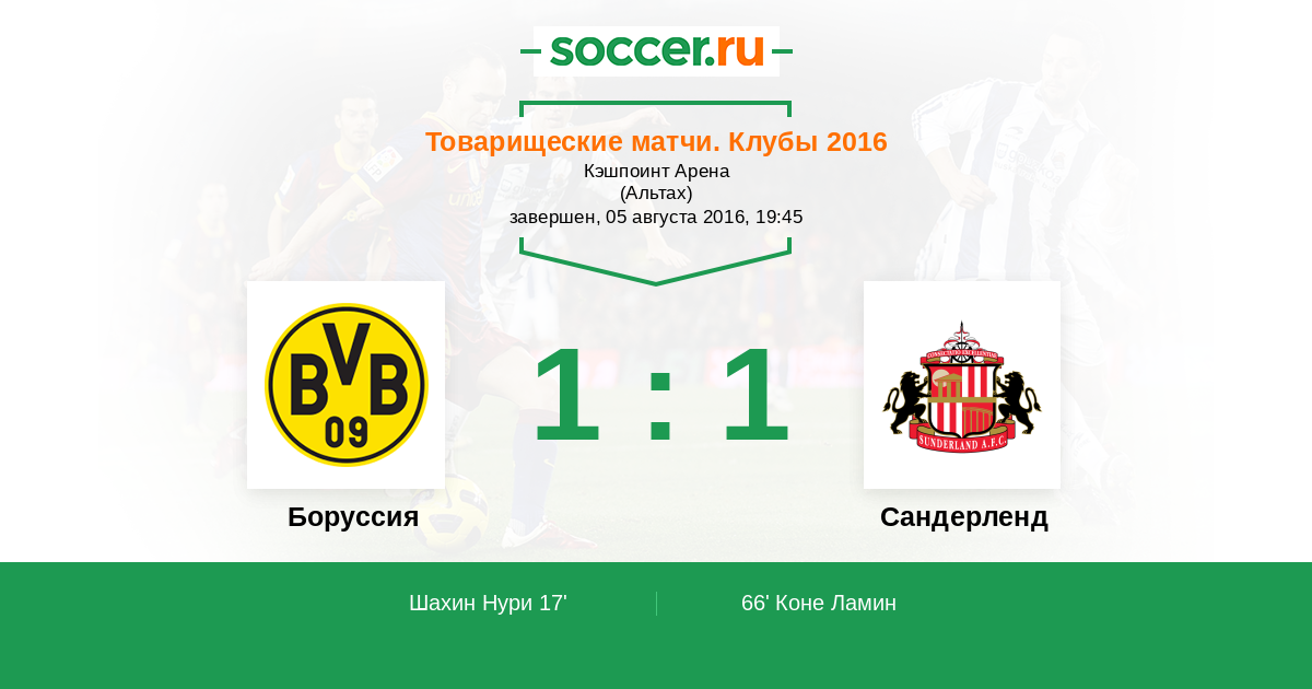 Протокол матча Боруссия против Сандерленд