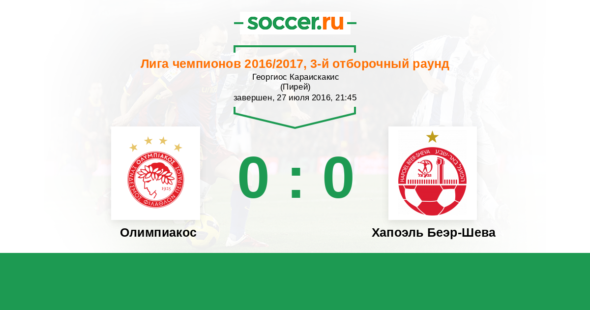 Протокол матча Олимпиакос против Хапоэль Беэр-Шева