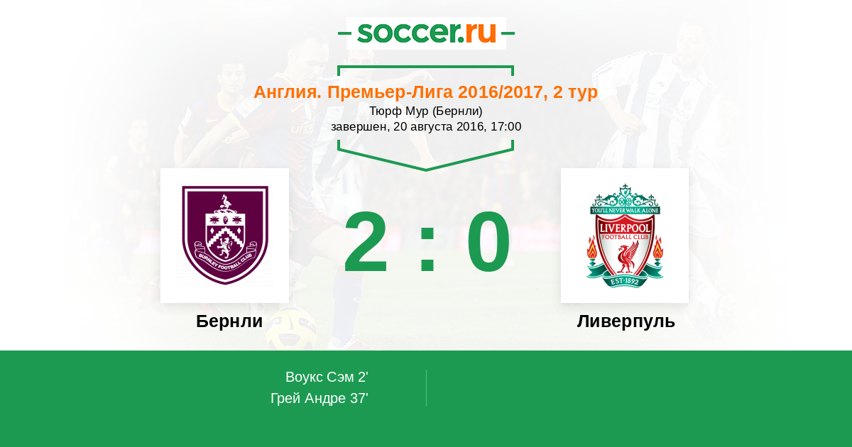 2' (1:0) Воукс Сэм (9) (Грей Андре (7))