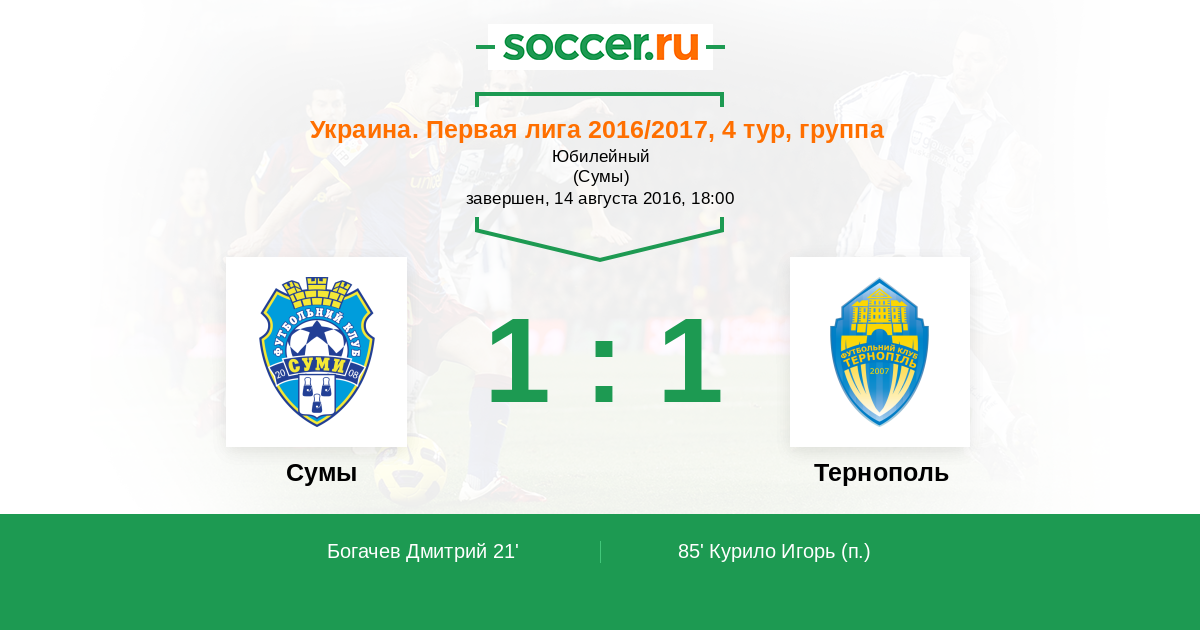 Протокол матча Сумы против Тернополь