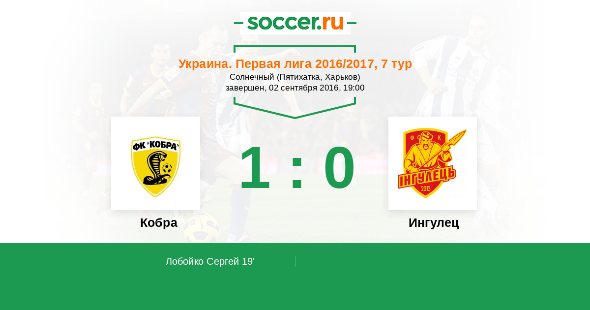 19' (1:0) Лобойко Сергей
