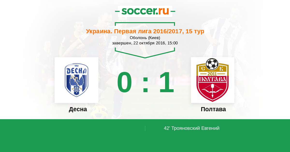 Протокол матча Десна против Полтава