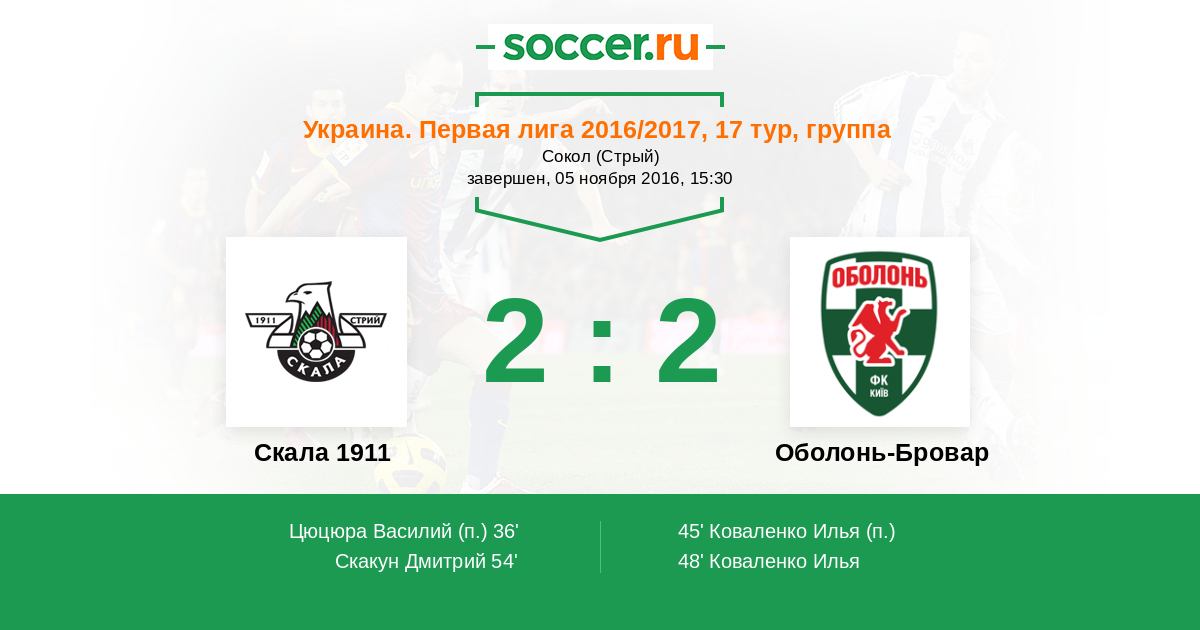 Протокол матча Скала 1911 против Оболонь-Бровар