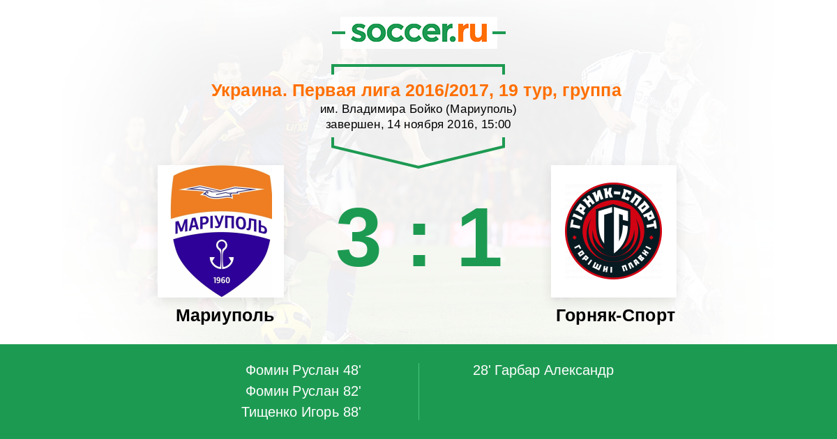 Протокол матча Ильичевец против Горняк-Спорт