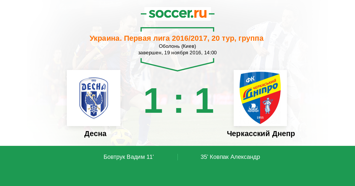 Протокол матча Десна против Черкасский Днепр