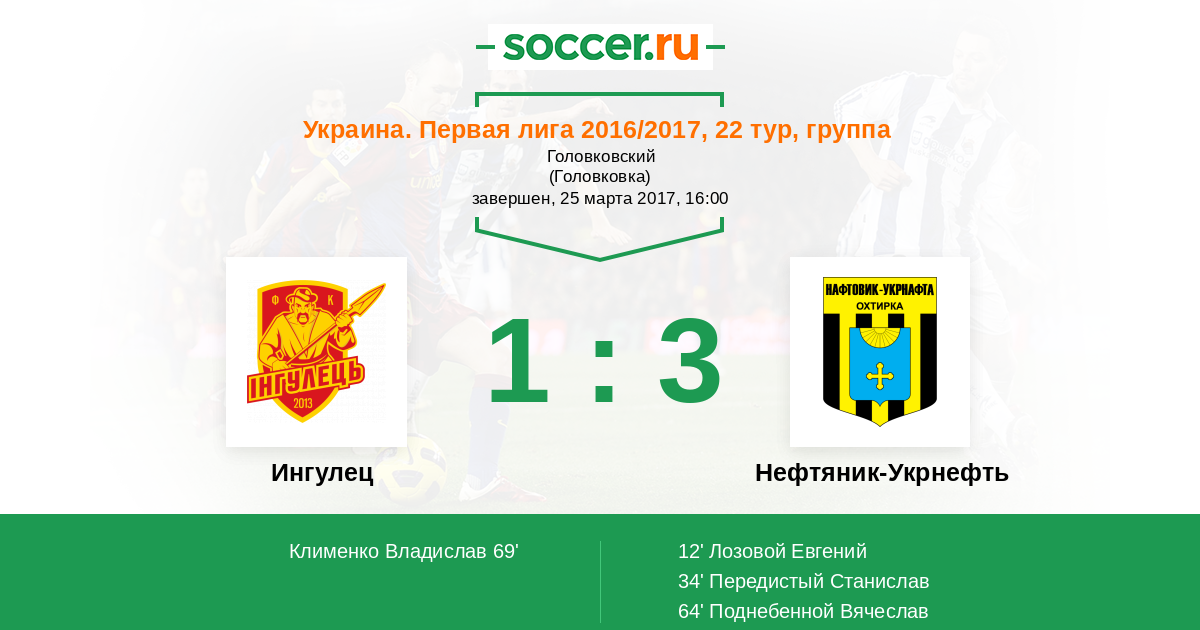 Протокол матча Ингулец против Нефтяник-Укрнефть