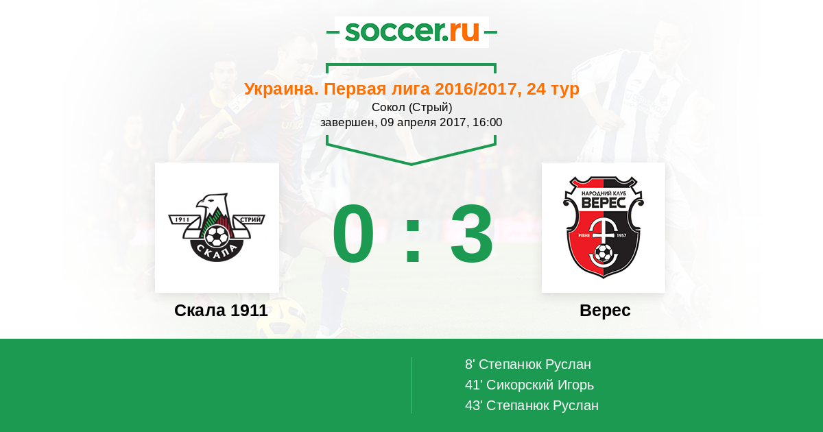 Протокол матча Скала 1911 против Верес