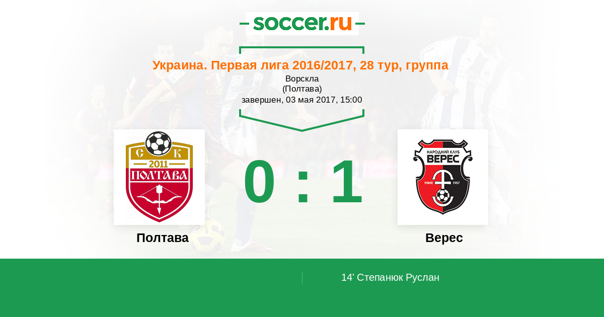 Протокол матча Полтава против Верес