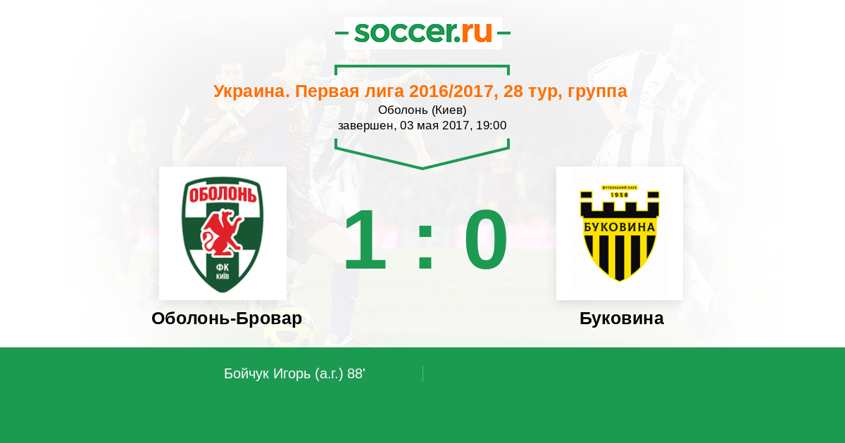 Протокол матча Оболонь-Бровар против Буковина