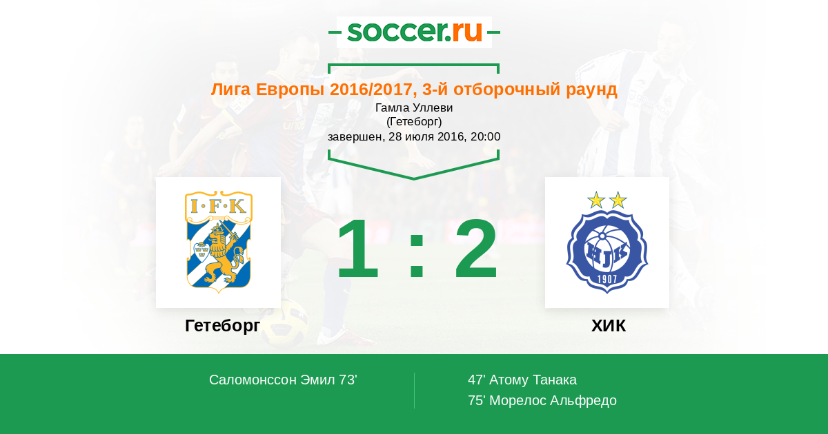 Протокол матча Гетеборг против ХИК